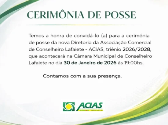 O evento será realizado no dia 30 de janeiro de 2026, às 19h, na Câmara Municipal de Conselheiro Lafaiete, reunindo